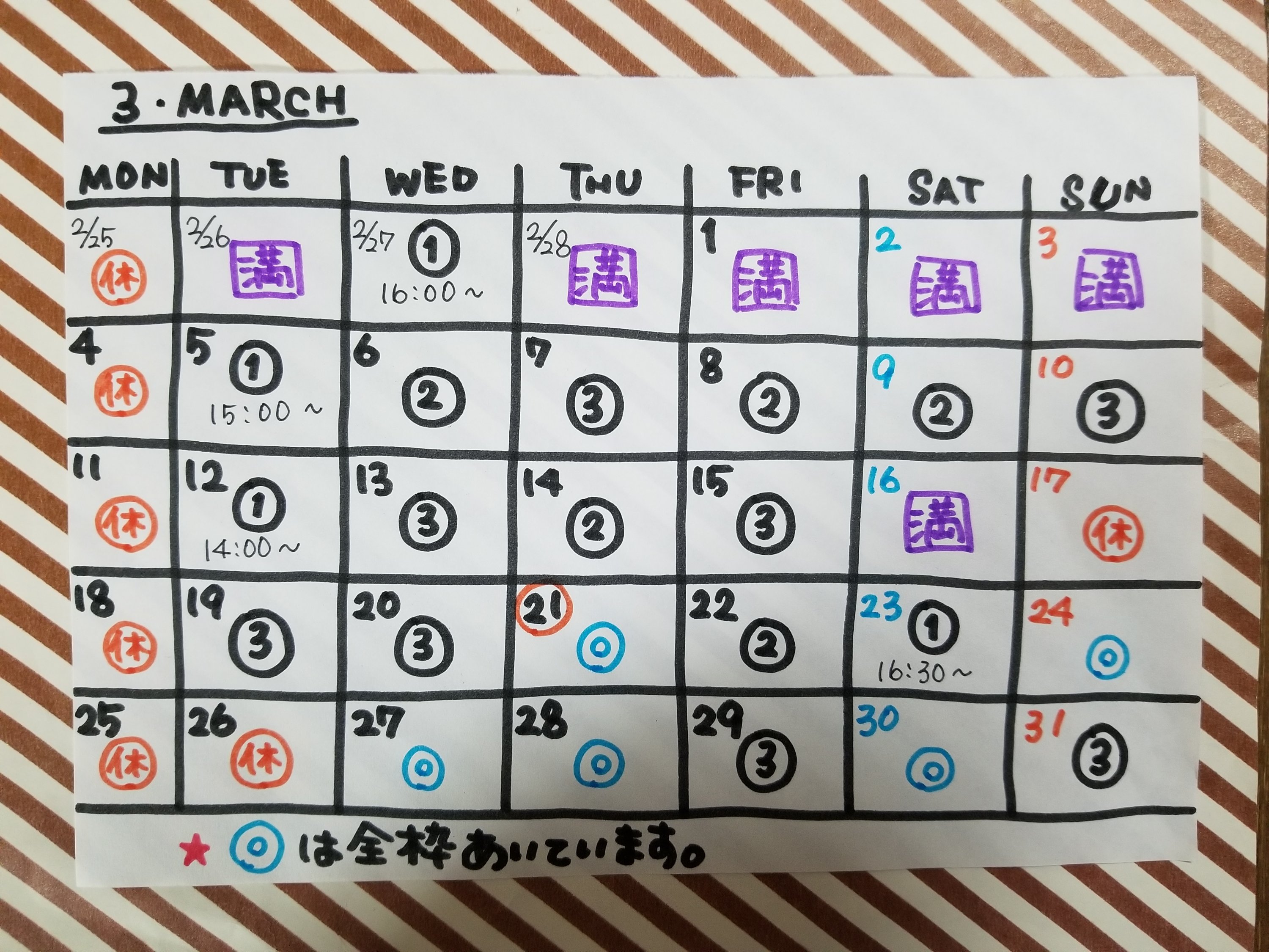 | « ご予約状況(2019年3月5日~31日) | ご予約状況(2019年2月14日~3月3日) » |