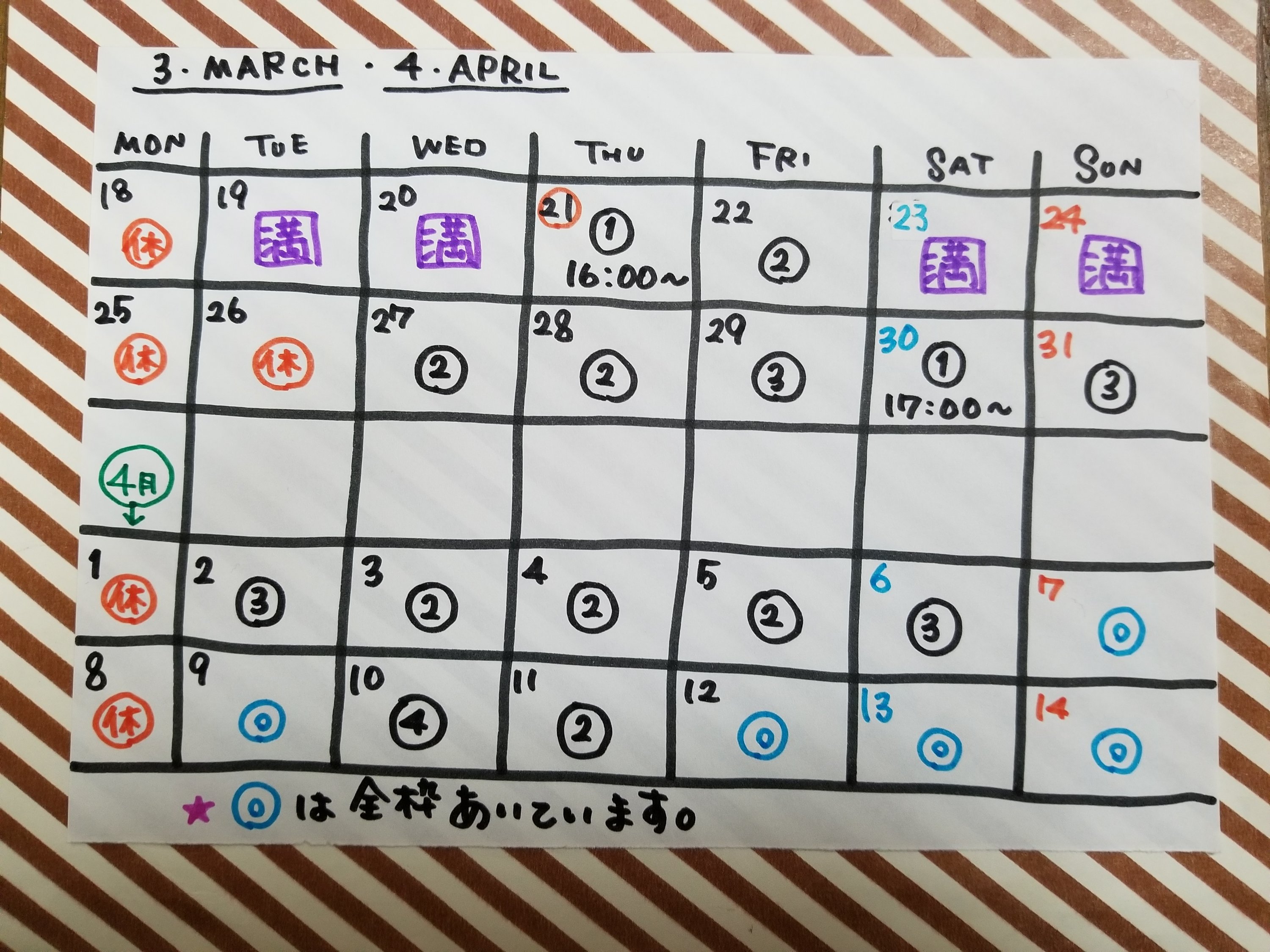 4月からは少しゆっくり空いていますので