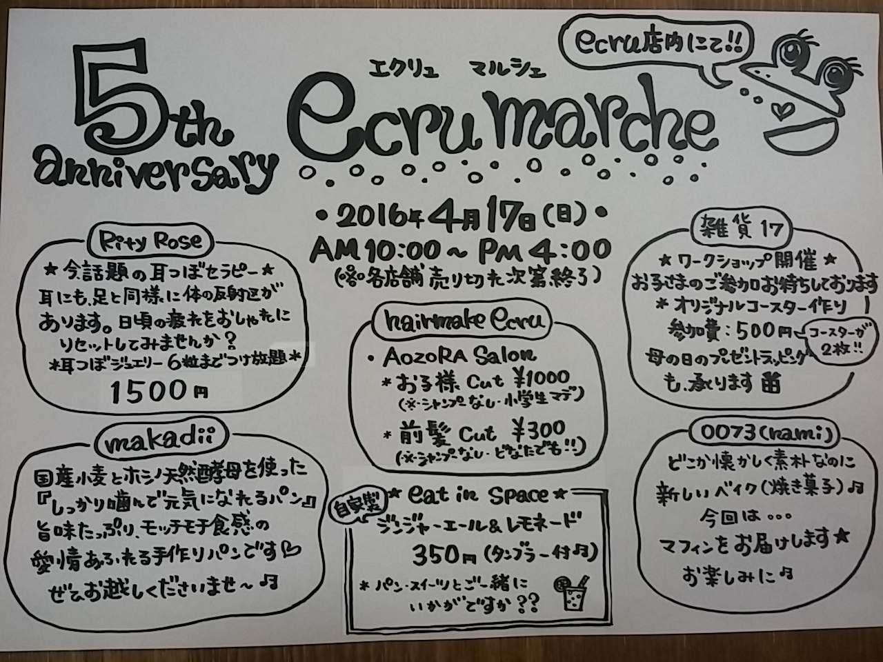 4月17日(日)のecru marcheに出店して頂く店舗のご紹介。
