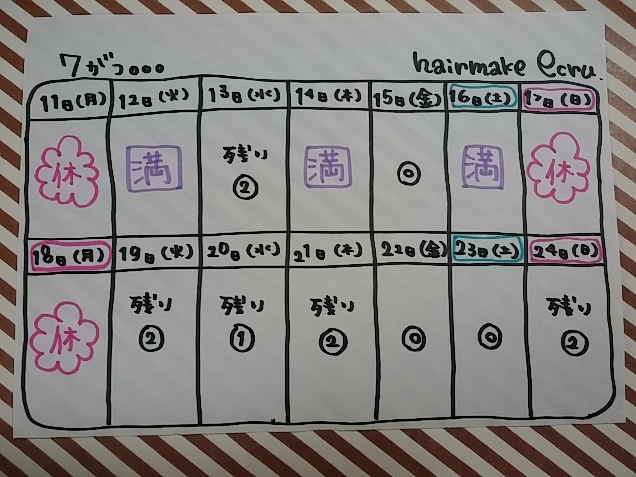 今週は17日(日)お休みを頂いております<(_ _*)>