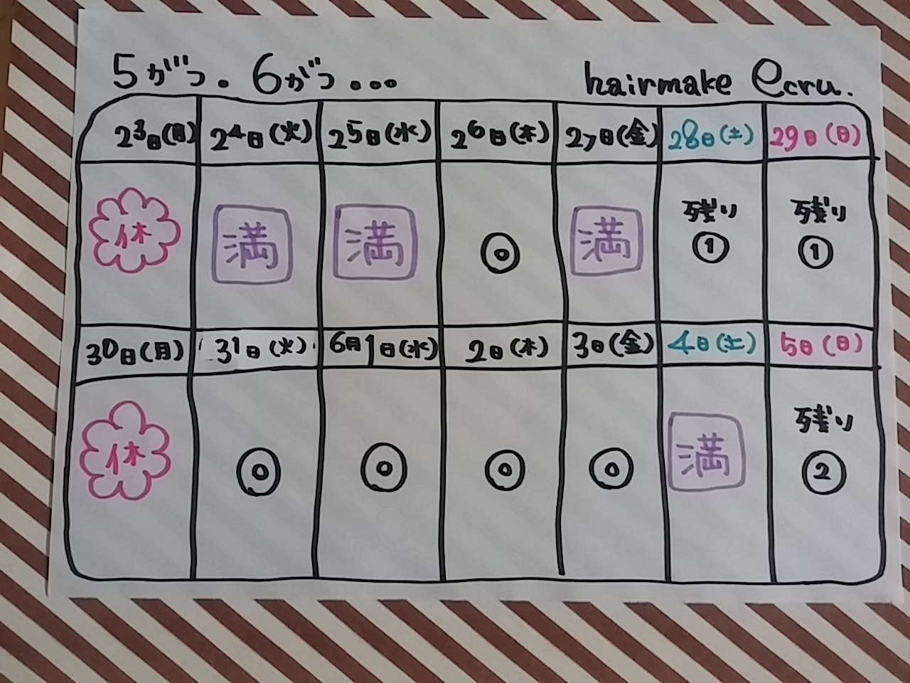 ご予約状況。(5月31日~6月12日)