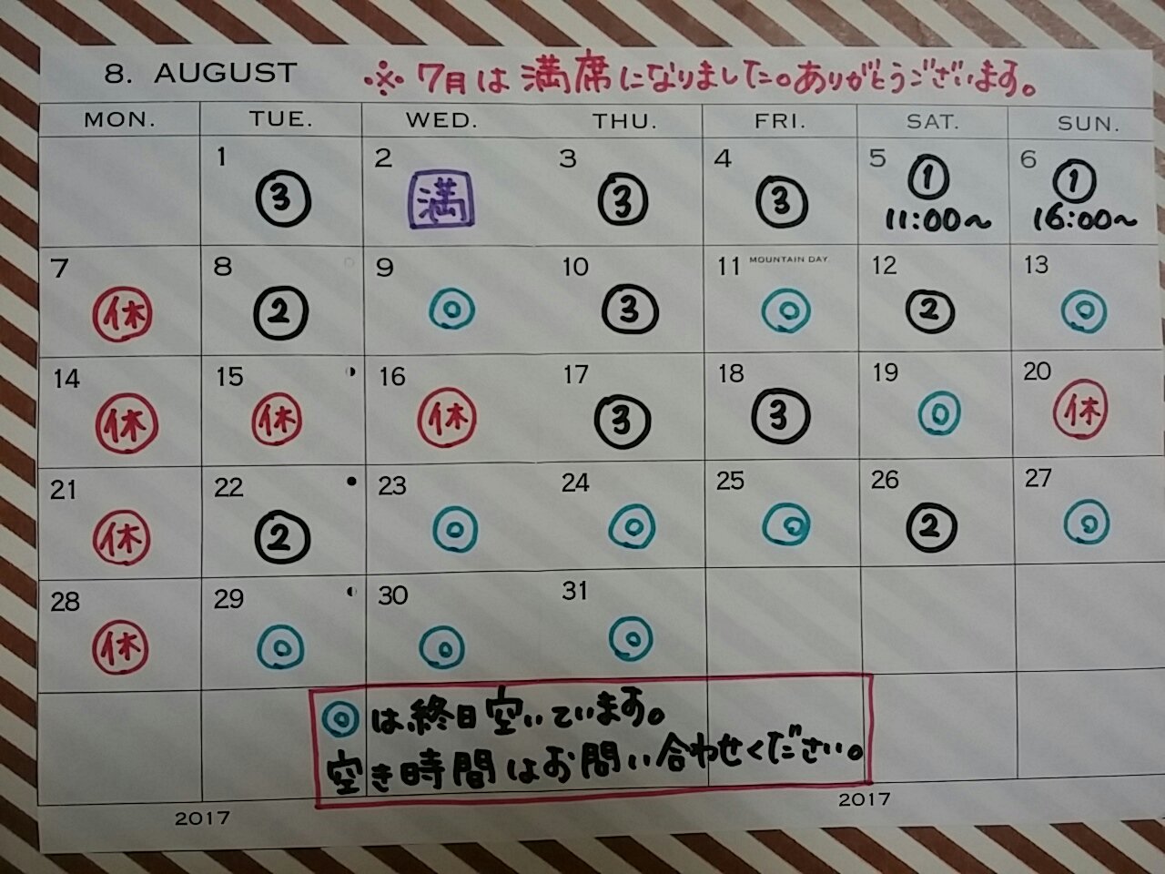 7月中、ほぼ満席となりました。 ありがとうございます。 8月はまだまだ空きがございます よろしくお願い致します。